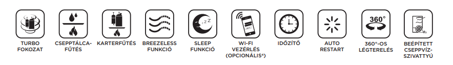 A Midea MCA4-12HRFNX-SP Kazettás split (R32, 3,5 kW, breezeless funkciós) fontos tulajdonságai: