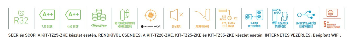 A Panasonic KIT-TZ42-ZKE Compact Inverteres Split klíma fontos tulajdonságai: