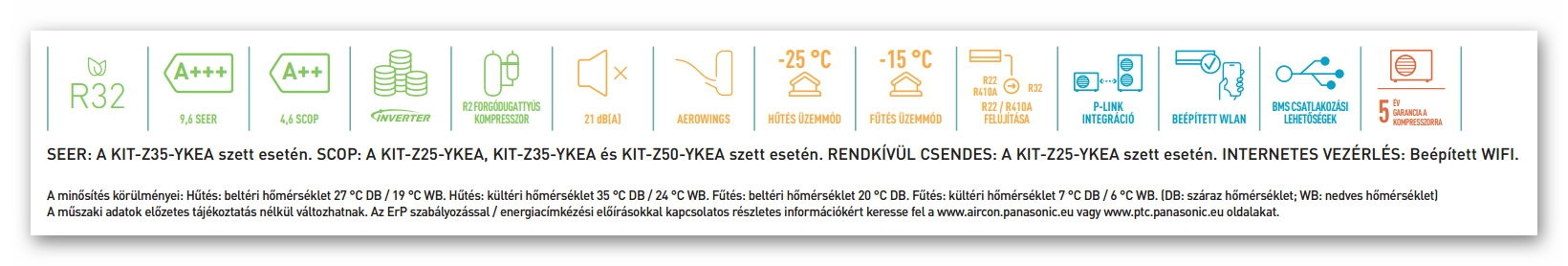A Panasonic KIT-Z35-YKEA Professional Inverteres Split klíma (szerver hűtésre alkalmas kivitel, vezetékes távszabályzóval, hűtés -20°C-ig!) fontos tulajdonságai: