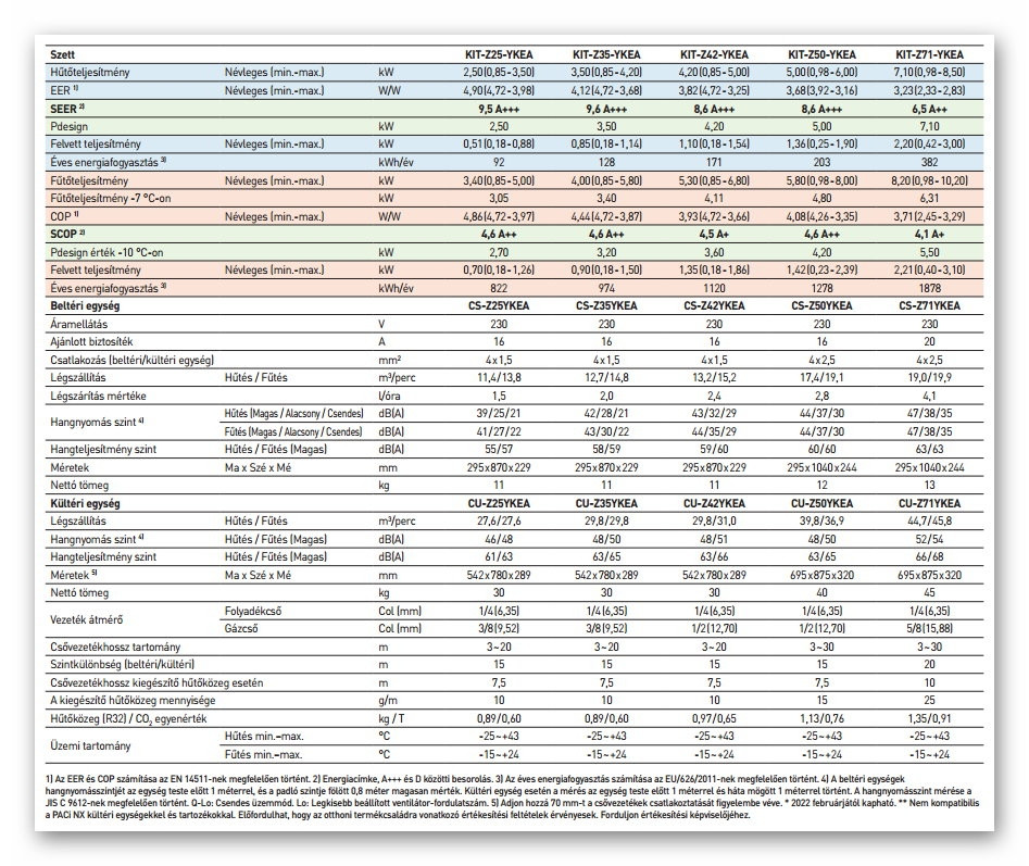 - Hűtő teljesítmény : 3,50 (0,85-4,0) kW